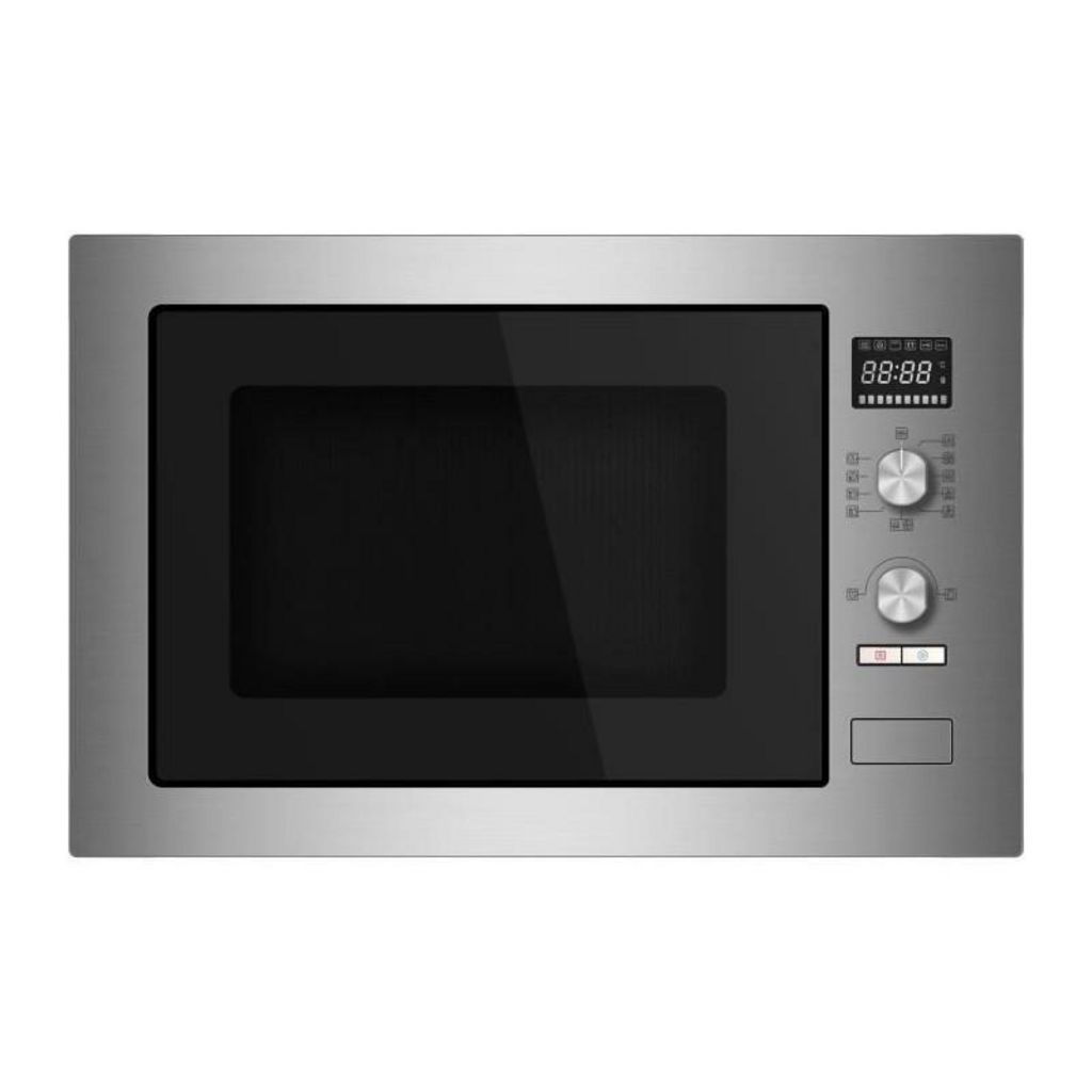 Micro ondes combiné encastrable 34L - 1000W - Affichage digital - Plateau tournant 31,5cm - Indicateur de temps - 9 niveaux de cuisson - 10 programmes automatiques - Puissance grill 1100W - Puissance chaleur tournante 1550W - Sécurité enfants - Coloris Inox - Garantie 2 ans