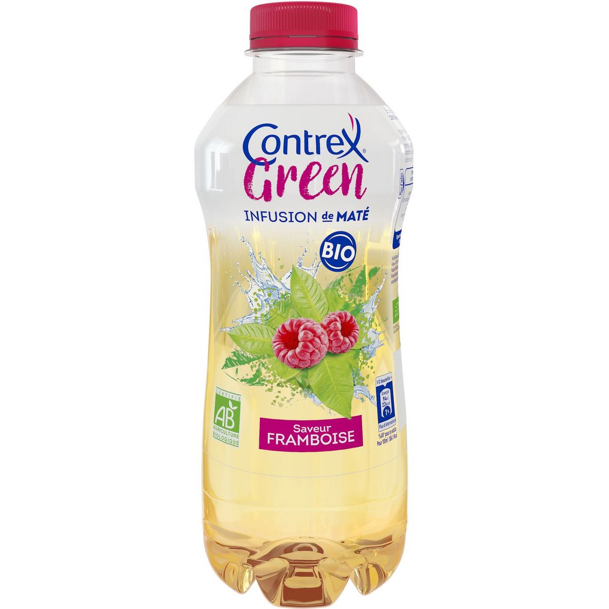 Boisson bio aromatisée, à l’eau minérale naturelle CONTREX et infusion de maté. Saveur Framboise.