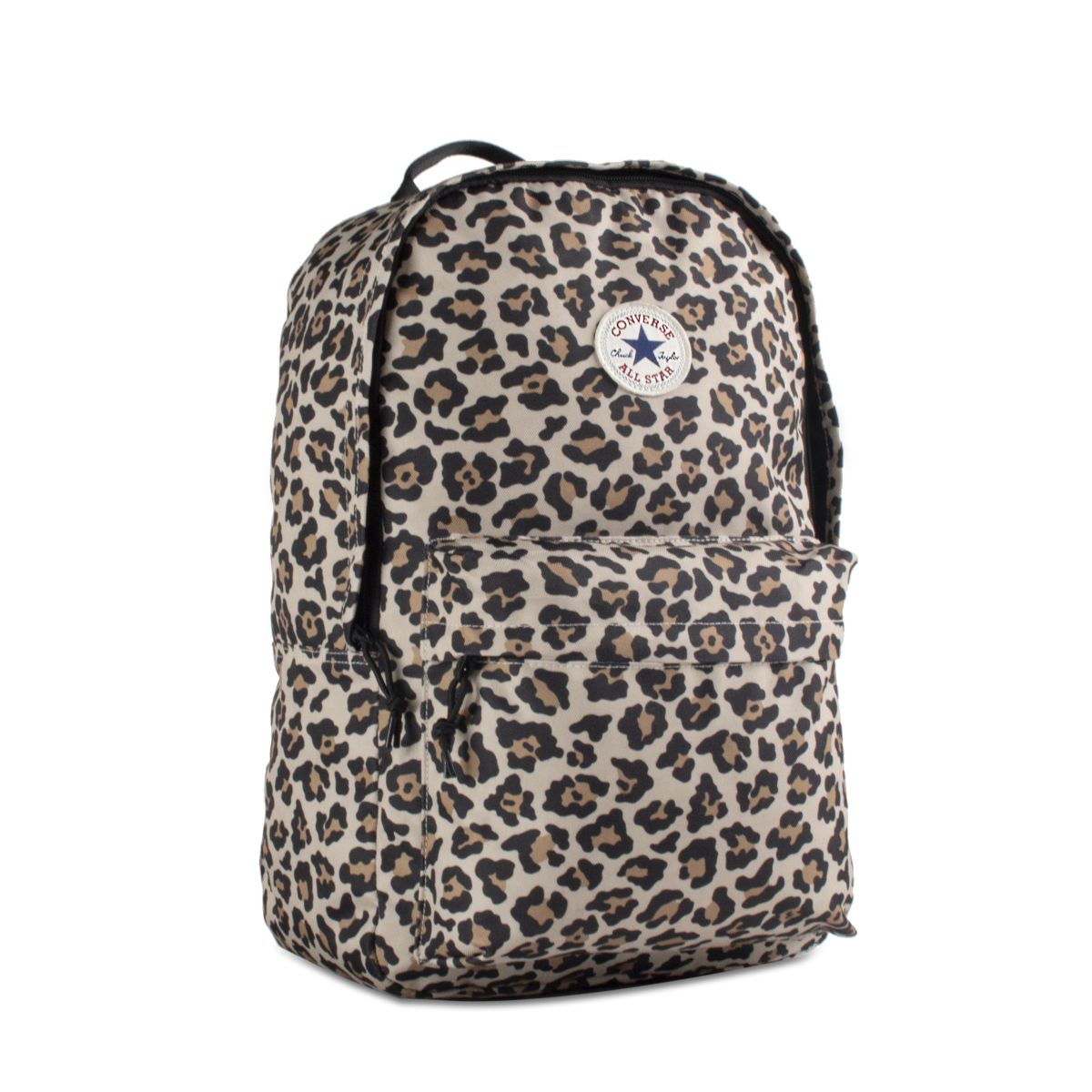 Tu vas pouvoir glisser tes cahiers et ta trousse sans problème dans ce sac à dos léopard Converse.