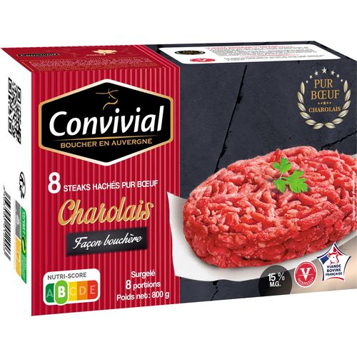 STEAK HACHE PUR BŒUF CHAROLAIS FACON BOUCHERE 15% MG 8X100G - SURGELE
