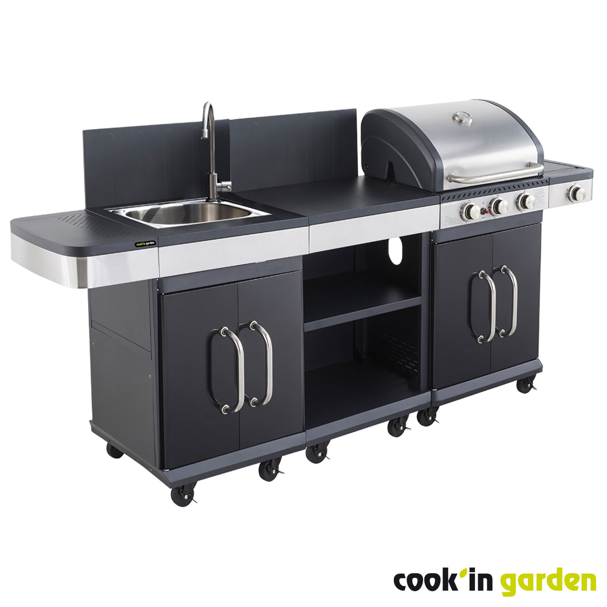 Si vous rêvez d'une cuisine d'extérieur complète et pratique, l'ensemble barbecue FIDJI 3 + desserte + évier est le produit qu'il vous faut ! Le FIDJI 3 est un barbecue à gaz mixte , facilement déplaçable grâce à ses 4 roues multidirectionnelles avec freins. Ce barbecue 2 en 1 est composé d'une partie grille et d'une partie plancha vous permettant d'adapter vos types de cuisson. Son réchaud latéral vous permettra de maintenir vos plats à la bonne température ou encore l'élaboration de sauces. Le FIDJI 3 est doté de 3 brûleurs indépendants ainsi qu'un système d'allumage par piezo qui permet une cuisson rapide de tous types d'aliments. Le capot est doté d'un thermomètre intégré et la partie basse de rangements vous permettra de stocker ustensiles et ingrédients. La desserte, quant à elle, dispose d'une grande surface de travail et se fixera à votre barbecue FIDJI 3 afin de créer une véritable cuisine d'extérieur. Enfin, l'évier vous permettra de laver vos ingrédients, votre vaisselle ou encore vos mains sans avoir à vous déplacer. Il vous offrira encore plus de rangements et se fixe lui aussi au barbecue. Cet ensemble vous offre l'expérience intégrale d'une cuisine complète à l'extérieur.