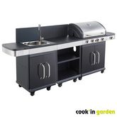 Le FIDJI 4 est un barbecue à gaz mixte , facilement déplaçable grâce à ses 4 roues multidirectionnelles avec freins. Ce barbecue 2 en 1 est composé d'une partie grille et d'une partie plancha vous permettant d'adapter vos types de cuisson. Son réchaud latéral vous permettra de maintenir vos plats à la bonne température ou encore l'élaboration de sauces. Le FIDJI 4 est doté de 4 brûleurs indépendants ainsi qu'un système d'allumage par piezo qui permet une cuisson rapide de tous types d'aliments. Le capot est doté d'un thermomètre intégré et la partie basse de rangements vous permettra de stocker ustensiles et ingrédients. La desserte, quant à elle, dispose d'une grande surface de travail et se fixera à votre barbecue FIDJI 4 afin de créer une véritable cuisine d'éxtérieur. Enfin, l'évier vous permettra de laver vos ingrédients, votre vaisselle ou encore vos mains sans avoir à vous déplacer. Il vous offrira encore plus de rangements et se fixe lui aussi au barbecue. Cet ensemble vous offre l'expérience intégrale d'une cuisine complète à l'extérieur.