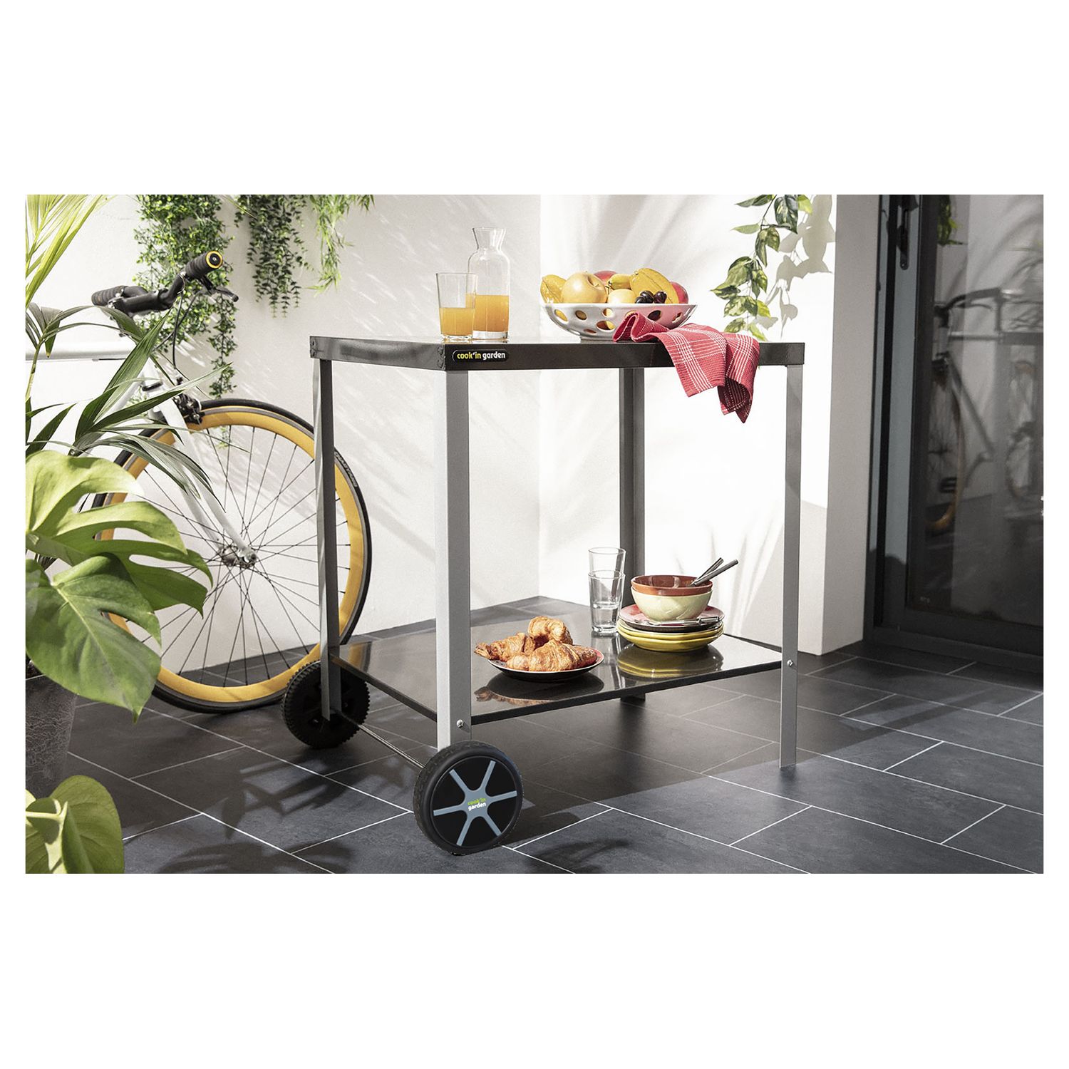 La desserte Media S vous permettra de facilement déplacer plats et planchas lors de vos déjeuners. Très facilement déplaçable grâce à 2 roues renforcées, elle vous servira de meuble d'appoint pour stocker ingrédients et ustensiles.