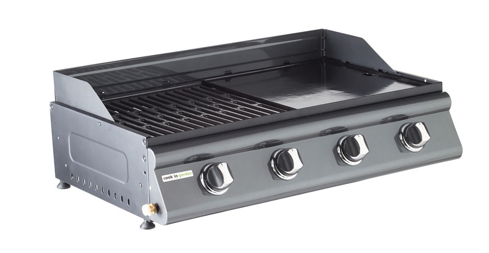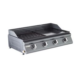 En savoir +Barbecue à poser australien à gaz mixte (Grill et plancha), équipé de 4 brûleurs inox, et d',une puissance totale de 14 KW. Dispose d',un parevent ainsi que d',un plateau récupérateur de graisse.