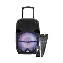 Le haut-parleur amplifié Bluetooth Coolsound A350 est un appareil moderne et fonctionnel destiné à une utilisation mobile. Avec une puissance maximale de 350W et une puissance RMS de 50W, il offre une qualité sonore exceptionnelle. Il est équipé d'une batterie 12V de 4500 mAh, d'un écran LCD, d'une connexion Bluetooth et de deux microphones sans fil. Le contrôle du volume général et du microphone est réglable grâce à une fonction d'écho intégrée. Le produit est conçu avec une poignée ajustable et des roulettes pour faciliter son transport, ainsi qu'un trou de montage pour trépied. Son design élégant en noir avec éclairage LED en violet attire l'attention lors de son utilisation, idéal pour tous vos événements.