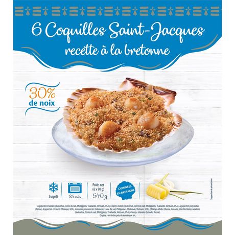 6 Coquilles St-Jacques à la Bretonne 30% x 90g - surgelées