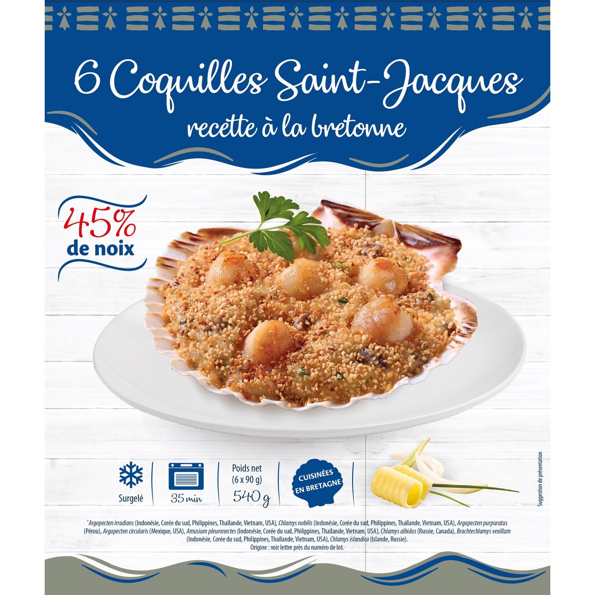 6 Coquilles St-Jacques à la Bretonne 45% x 90g - surgelées