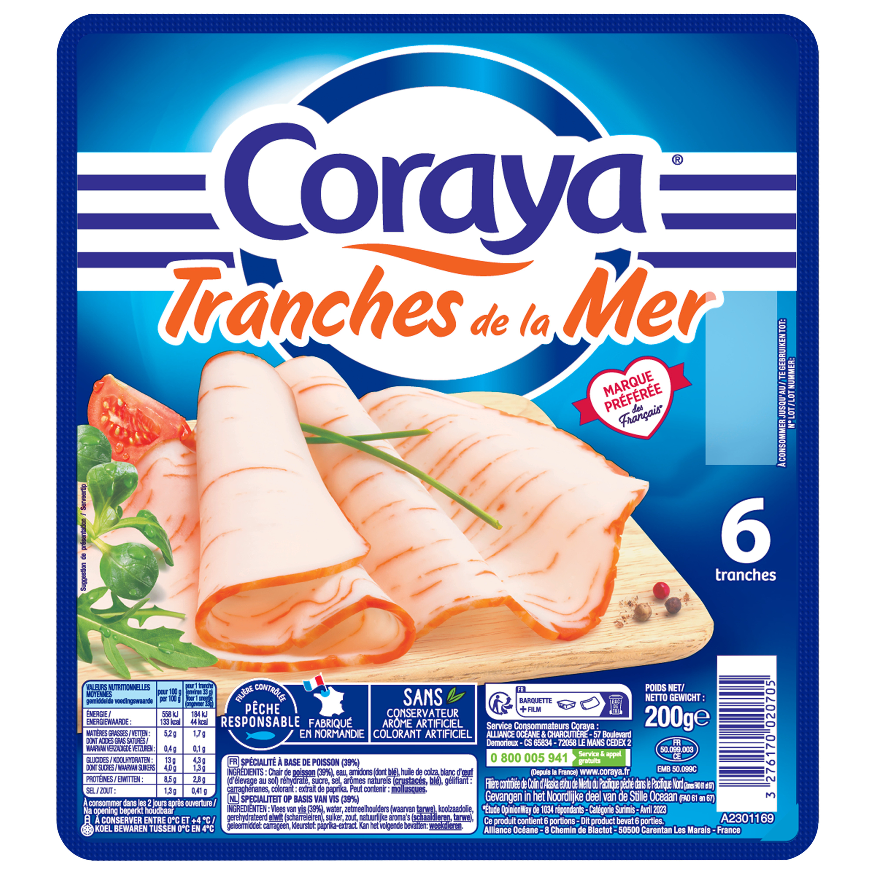 Service Consommateur CORAYA Alliance Océane & Charcutière – 57 boulevard Demorieux – CS 65834 – 72058 LE MANS CEDEX 2 0 800 005 941 Service et appel gratuit depuis la France,0 800 005 941 Service et appel gratuit depuis la France