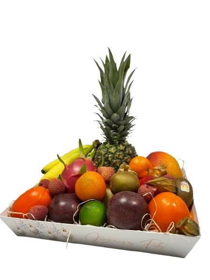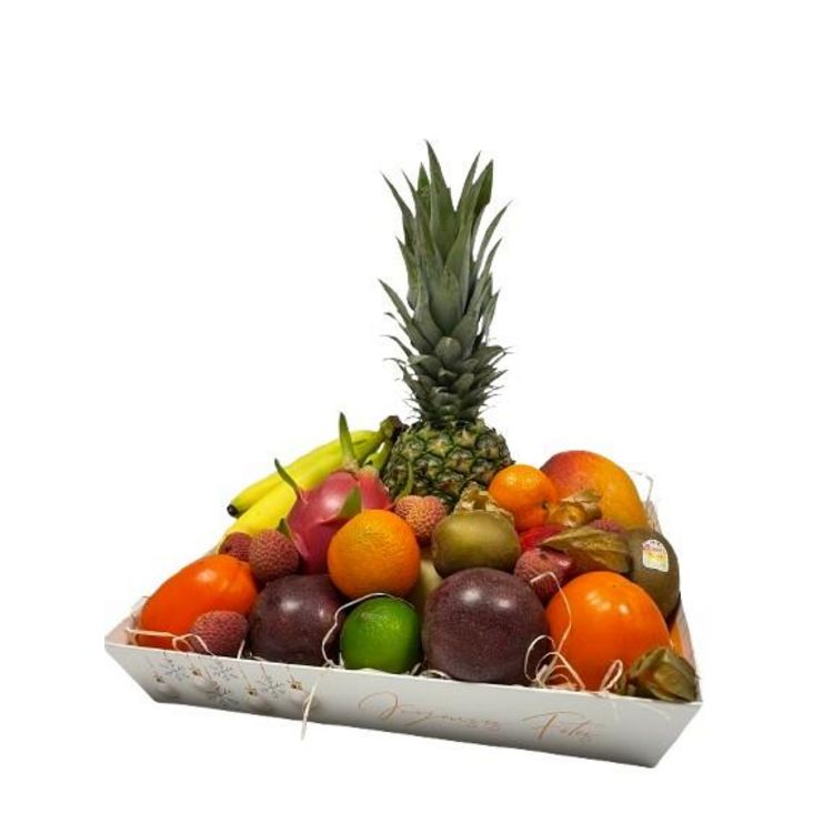 Cette corbeille de fruits exotiques est l’option idéale pour varier les plaisirs sans effort. Elle réunit une sélection de fruits aux textures et saveurs contrastées. C’est le choix parfait pour offrir ou pour proposer un assortiment prêt à déguster lors de vos réceptions. Profitez d'une touche d'évasion fruitée à tout moment.