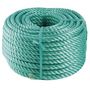 Informations produit:Corde polypropylène haute résistance en bobine Ø 14 mmLongueur 50 mètres4 toronsRésistance 2500 kgColoris vert