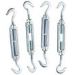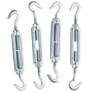 Ces tendeurs à cage avec deux crochets sont vendus par lot de quatre pièces. Ces tendeurs permettent le réglage et la tension du câble. Ils s'accrochent facilement aux extrémités et est rapide d'utilisation. Composés d'acier zingué, ils ont pour diamètre 8 mm.
