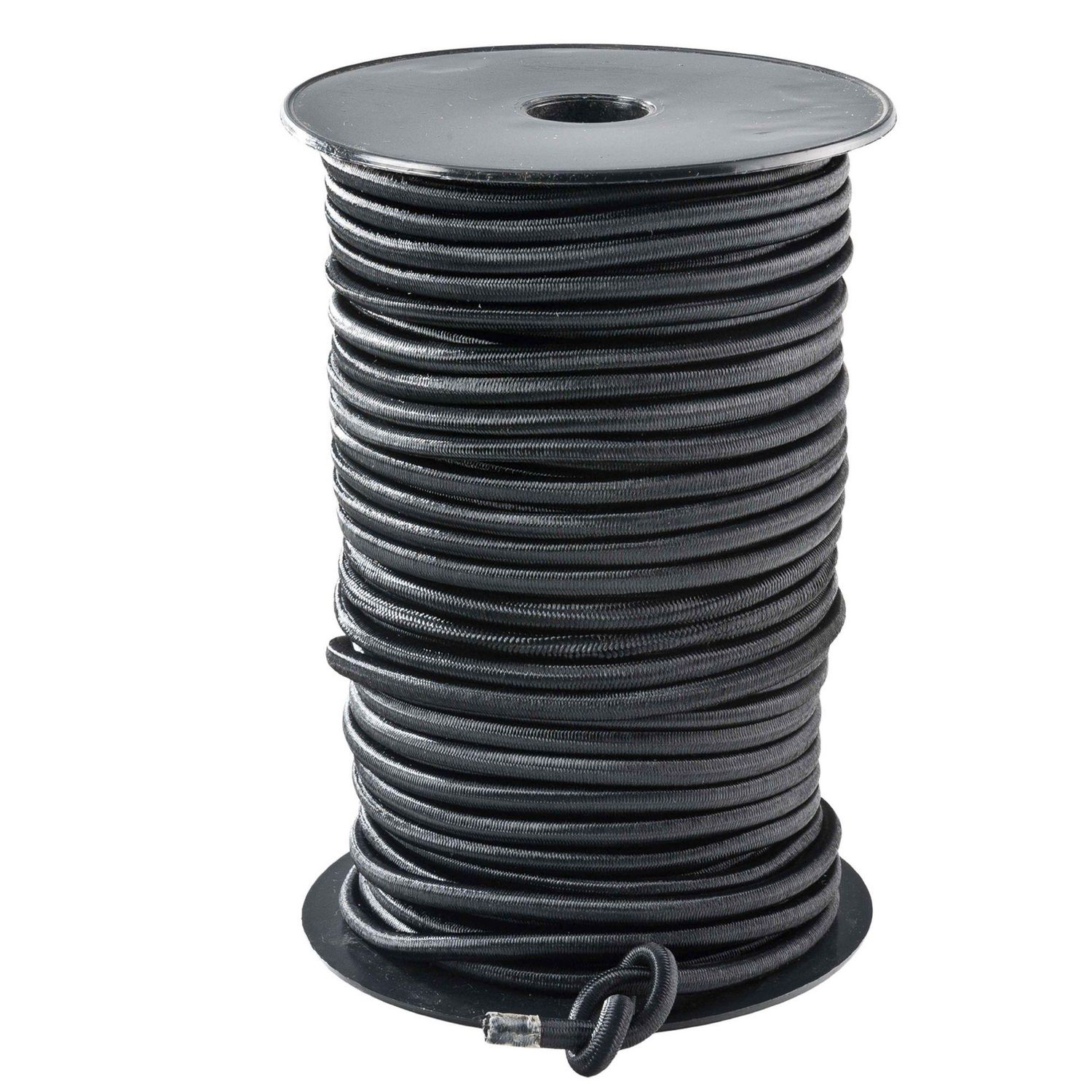 Tendeur élastique multibrins pour une utilisation intensive de fixation de bâche.Ce sandow en bobine de 50m et d'un diamètre de 6mm gainé de tresse nylon noir est très résistant. Utilisation standard de ces tendeurs pour sport, piscine, bâches, camping, marine, pêche, pergola ...