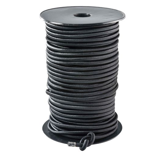 Ce sandow en bobine de 50m et d'un diamètre de 6mm gainé de tresse nylon noir est très résistant. Utilisation standard de ces tendeurs pour sport, piscine, bâches, camping, marine, pêche, pergola ...