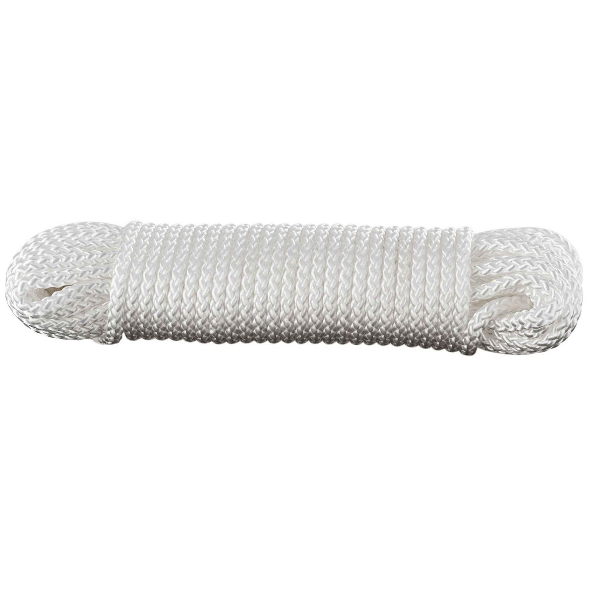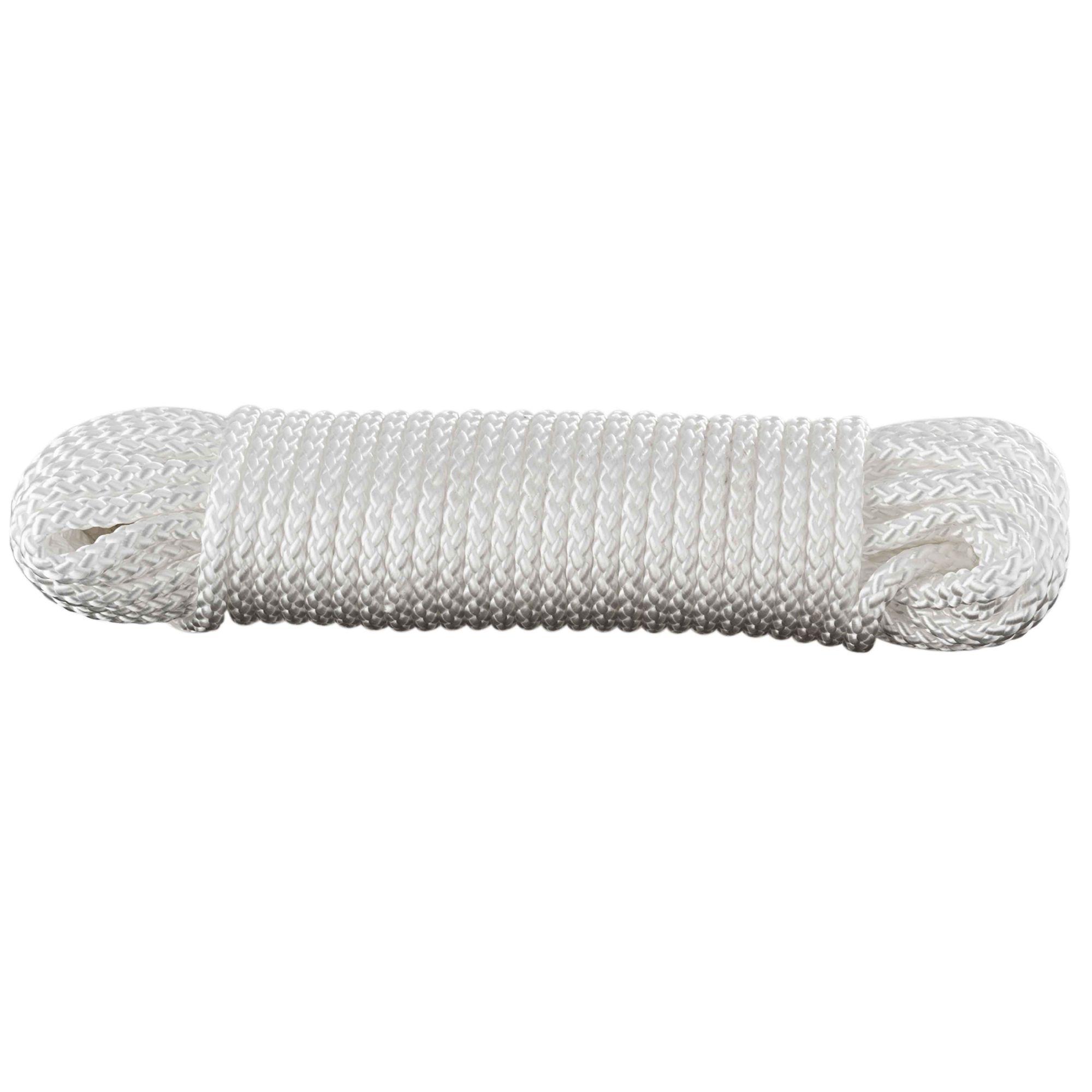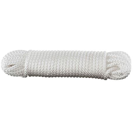 Cette corde ou drisse est tressée en polypropylène blanc très résistant aux intempéries et à la traction. Cette corde vous sera d'une grande utilité pour arrimer et fixer de nombreuses choses ainsi que des voiles ou toiles d'ombrage dans le jardin. D'une longueur de 20 m et d'un diamètre de 8 mm, elle a une résistance de 0,9 tonne.