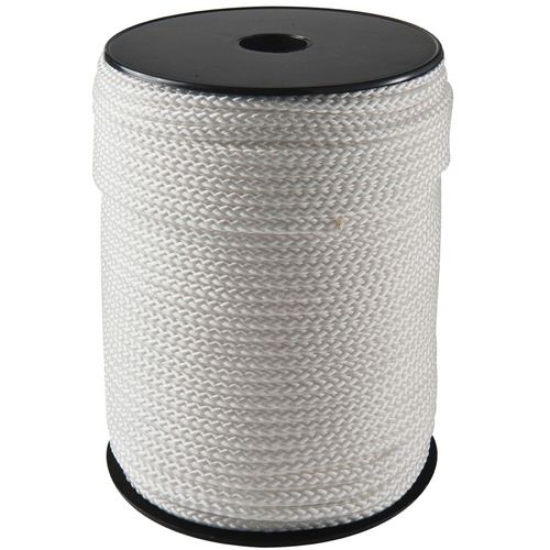 Corde tressé en polypropylène 8 fuseaux de diamètre Ø 5 mm et d'une longueur de 100 m. Idéal pour toute application terrestre ou maritime, elle a une résistance de 0,28 tonne.