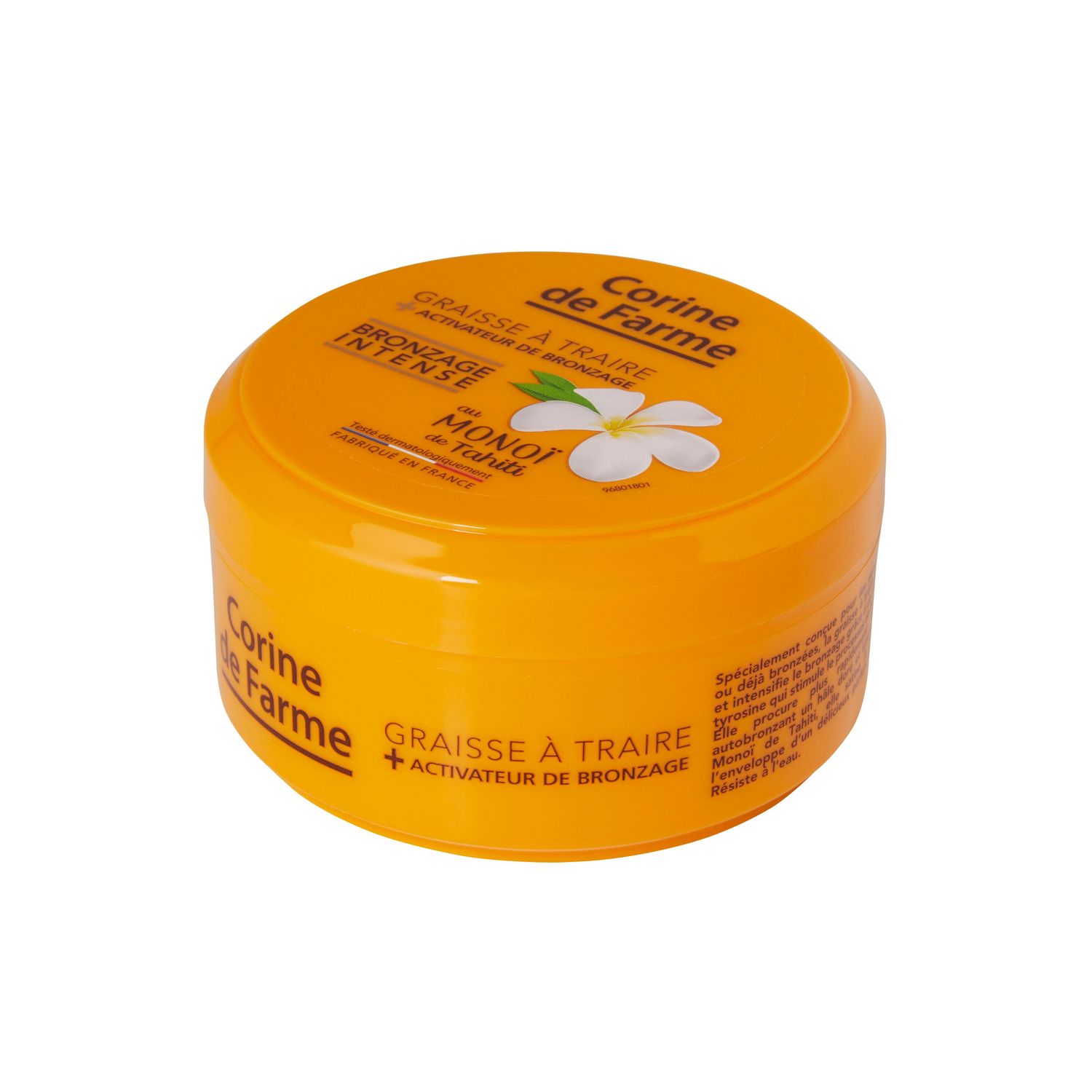 Spécialement conçue pour les peaux mates ou déjà bronzées, cette graisse à traire Corine de Farme active et intensifie le bronzage grâce à un dérivé de tyrosine qui stimule le processus de bronzage.