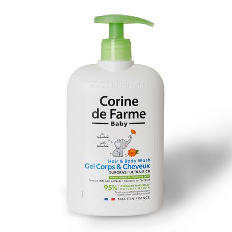 Corine de Farme réinvente sa formule pour encore plus de sécurité et de sensorialité : sans savon et sans sulfate* pour le plus grand respect de la peau sensible de bébé.