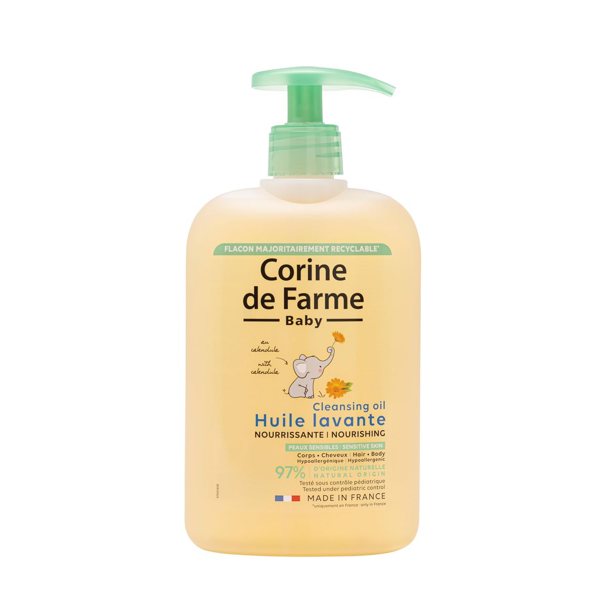 L’huile lavante nourrissante est spécialement conçue pour nettoyer en douceur la peau sèche à très sèche de bébé dès la naissance. Sa formule hypoallergénique contient des agents surgras associés à un extrait de calendula, elle apaise les sensations d’inconfort et de tiraillement. La peau est nourrie, enveloppée d’un voile protecteur, douce et délicatement parfumée. Convient également pour les cheveux délicats de bébé. Testé sous contrôle pédiatrique et dermatologique. 97% d’ingrédients d’origine naturelle. Hypoallergénique : formulé pour minimiser les risques d’allergies.