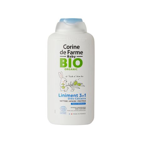 Le liniment oléo-calcaire Corine de Farme est parfait pour le nettoyage en douceur des fesses sensibles de bébé.Certifié Ecocert COSMOS ORGANIC, le liniment oléo-calcaire Corine de Farme est parfaitement adapté pour le change des bébés dès la naissance*. Inspiré de la recette traditionnelle, il nettoie efficacement et en douceur les fesses sensibles de bébé, prévient les rougeurs et irritations et apaise la peau. Enrichi en huile d’Olive bio aux vertus protectrices et en cire d’Abeille, il crée un film protecteur entre les fesses et la couche. La peau de bébé est propre, ultra-douce, nourrie et apaisée.