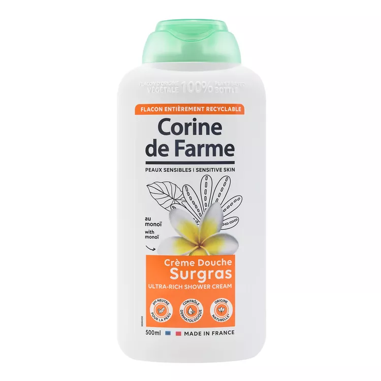 La crème douche surgras au Monoï nettoie tout en douceur sans dessécher la peau, même les plus sensibles.