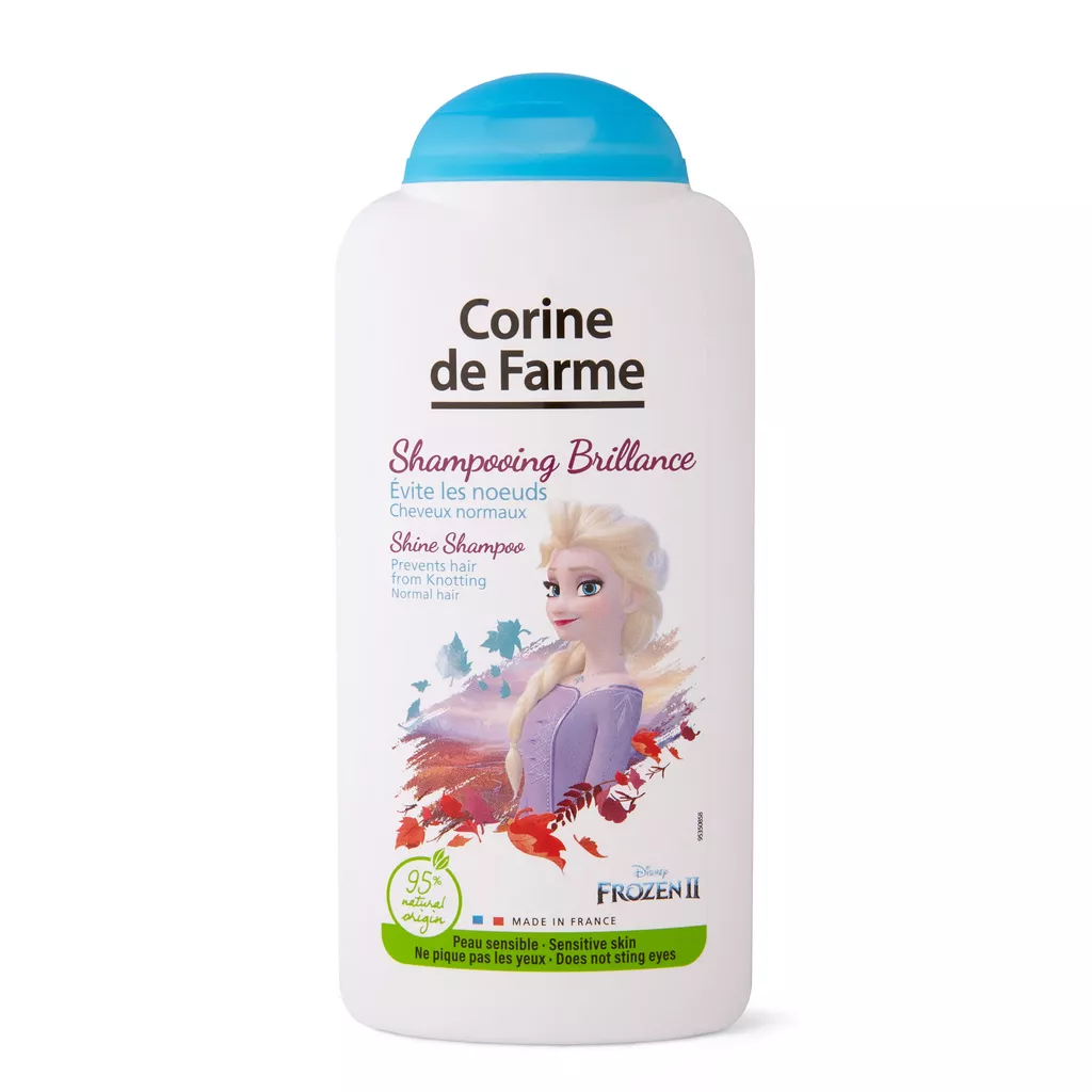 A toi les cheveux d’Elsa avec le Shampooing Brillance Reine des Neiges 2 Corine de Farme ! Sa formule 100% clean beauty nettoie en douceur les cheveux et les laisse délicatement parfumés. Son parfum fraise te plongera dans l’univers merveilleux de la Reine des Neiges !