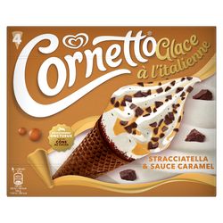 Savourez la douceur de la glace à l'italienne Cornetto avec ces cornets au parfum Stracciatella & Sauce Caramel.
