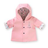 Le ciré est complètement réversible : au choix pour son poupon : une face rose avec l'imprimé Tour Eiffel ou une face avec le tissu exclusif de la collection Week-end à Paris.