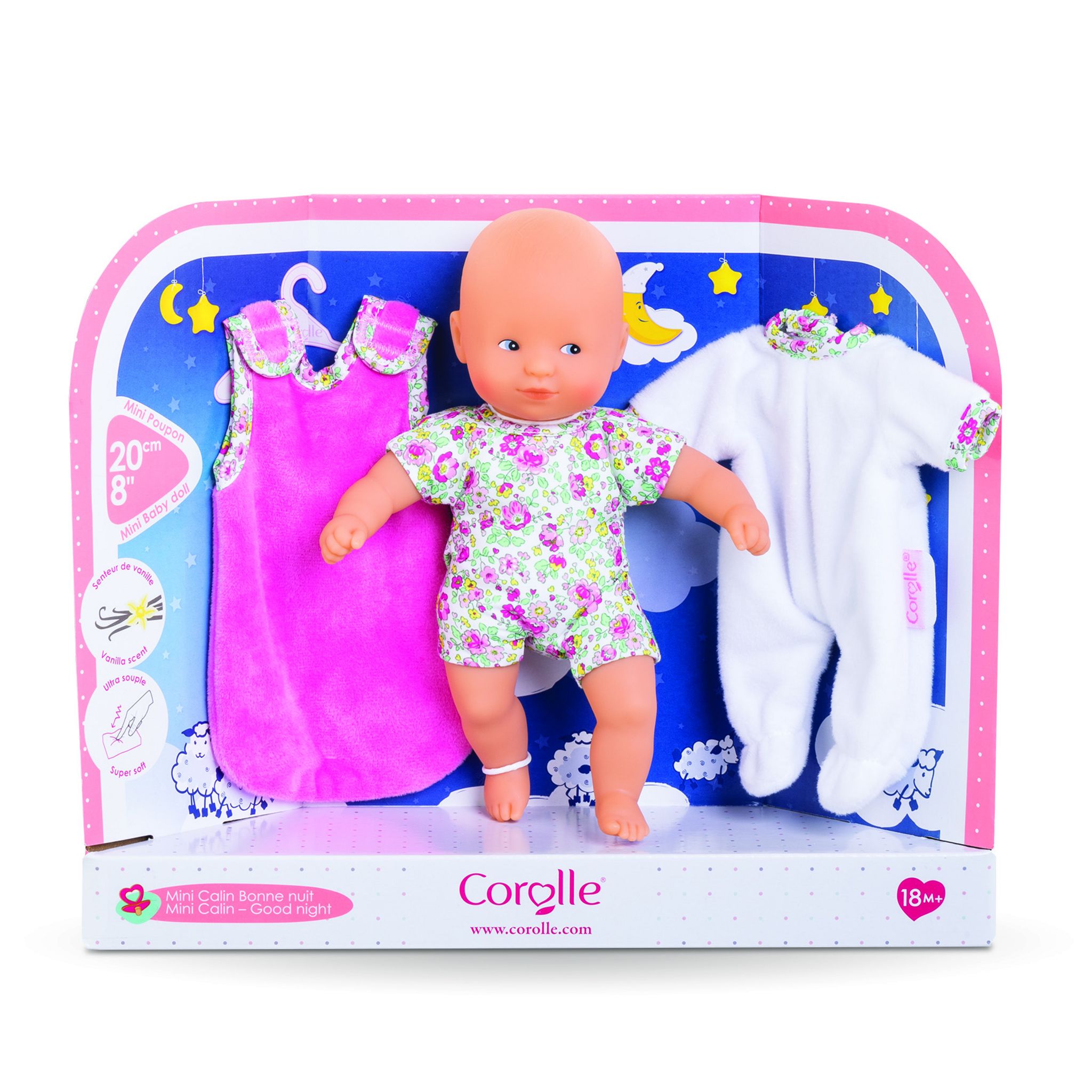 Coffret avec 1 Mini Calin de 20 cm, 1 pyjama et 1 turbulette. Corps souple. Yeux peints. Senteur de vanille. Dès 18 mois.