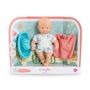 Ces mini poupons sont de véritables baigneurs et des petits compagnons de baignade qui aident les enfants à se familiariser en douceur avec tout type de milieu aquatique : ? dans le bain (eau savonneuse) ? à la piscine (eau chlorée) ? et à la mer (eau salée). Ce coffret Mini Bain est composé : - d'un petit poupon Mini Bain de 20 cm léger et facile à emmener partout, - d'une cape de bain pour le sécher, - d'un jouet bateau qui flotte sur l'eau. Il est idéal pour accompagner le bain quotidien de l'enfant et les baignades à la piscine et à la mer, car il peut facilement si glisser dans un sac grâce à sa petite taille. Sa cape de bain en éponge, conçue pour les petites mains dès 18 mois, est facile à enfiler. Le mini poupon a la peau blanche et les yeux marron peints : son visage, ses bras et ses jambes sont en vinyle doux au toucher, à la délicate senteur de vanille. Il possède une jolie toile de corps imprimée de motifs aquatiques. Ce coffret mini poupon est livré dans un polybag (sachet plastique). Mon premier poupon Corolle : des petits poupons pour pouponner pour la première fois.