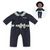 Cette jolie combinaison marine présente des détails craquants : un col claudine au motif fleuri et une ceinture avec son nœud assorti.