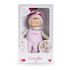 Miss : le doudou incontournable. Visage vinyle rassurant. Senteur de vanille réconfortante. 25 cm. Cadeau de naissance idéal. Mon doudou Miss Chic Rose Grenadine et moi, c'est une grande histoire. Quand je l'ai vue pour la première fois, j'ai tout de suite aimé ses belles couleurs. J'ai d'ailleurs immédiatement voulu la serrer tout contre moi et j'ai découvert sa grande douceur ! Elle se glisse partout avec sa petite taille (25 cm). Je peux la prendre facilement par sa queue de cheval, ses bras, ses jambes, ses pieds et même sa salopette. Elle est tellement légère ! Son visage réaliste en vinyle me rassure : si je suis triste ou que j'ai un peu peur quand mes parents ne sont pas là, il me suffit de la regarder pour me sentir mieux. Sa délicate senteur de vanille vient agréablement m'envelopper quand j'ai besoin d'être réconforté(e). Ma Miss et moi, on est inséparables. Car même si je l'oublie quelque part, on me la rendra : elle possède une étiquette pour écrire mon prénom ou le numéro de téléphone de mes parents. Lavable en machine, cycle délicat. mon doudou Corolle : Toi et moi, pour toujours. Dès la naissance. Pour des raisons de conditionnement, la tête de la Miss a été fixée par 2 points de couture à l'insert du packaging. Il convient de les couper délicatement pour profiter pleinement de la Miss.