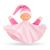 Le doudou Tidoudou Rêves d'Étoiles a la peau blanche et les yeux bleus peints. Il est habillé d'un tissu rond bi-couleurs et bi-matière (un côté tout doux en velours avec motifs étoiles et de l'autre un tissu à motifs rayures rose/blanc. Il porte un bonnet rose tout doux sur sa tête.