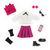 Le Dressing Collège Anglais constitue une tenue complète pour les poupées mannequins Corolle Girls, composée de 8 accessoires ultra-tendance pour ressembler à une étudiante anglaise : 1 jupe rose à carreaux, 1 chemise blanche à manches longues avec un nœud noir, 1 paire de boucles d'oreilles, 1 pair