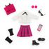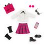 Le Dressing Collège Anglais constitue une tenue complète pour les poupées mannequins Corolle Girls, composée de 8 accessoires ultra-tendance pour ressembler à une étudiante anglaise : 1 jupe rose à carreaux, 1 chemise blanche à manches longues avec un nœud noir, 1 paire de boucles d'oreilles, 1 paire de lunettes de soleil noires en forme de cœurs, 1 téléphone portable rose, 1 cartable rose, 1 paire de guêtres noires et 1 paire de pieds-bottines noires amovibles.