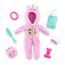 Le Dressing Combinaison Licorne constitue une tenue complète pour poupée Corolle Girls, composée de 7 accessoires ultra-tendance pour une soirée pyjama au top, ou bien pour rester chez soi en mode cocooning : 1 combinaison licorne violette à fermeture éclair, 1 masque de sommeil rose, 1 chouchou rose, 1 coussin en forme de tête de licorne rose, 1 brosse à cheveux turquoise, 1 doudou-ourson rose fuchsia et 1 totebag turquoise pour ranger !