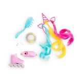 L'ensemble Accessoires Coiffure Arc-en-ciel pour poupée mannequin Corolle Girls est composé d'un serre-tête licorne, d'une paire de rollers mauves, d'une brosse à cheveux bleu, d'un chouchou gris et de deux paires de boucles d'oreilles. Convient à toutes les poupées Corolle Girls.