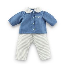 ENSEMBLE COMPLET: Tenue tendance composée d'une blouse en imitation denim avec col Claudine rayé vert et blanc, accompagnée d'un pantalon rayé assorti. COMPATIBILITÉ: Spécialement conçu pour les poupées ma Corolle de 36 cm, cette tenue offre un ajustement parfait. MATÉRIAUX PREMIUM: Confectionné en