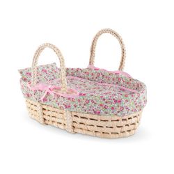 Ce charmant Couffin Tressé est le cocon parfait pour installer confortablement son poupon de 36 à 42 cm pour de longs dodos. Pratique et léger, il permet aussi d'emmener son poupon préféré prendre l'air.Il est vendu avec un oreiller réversible et une couverture assortie également réversible. Les gra