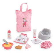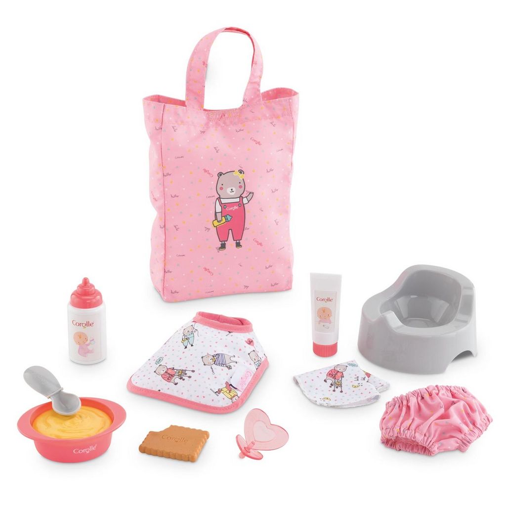 Le Grand Coffret d'Accessoires contient tous les accessoires indispensables pour s'occuper de son petit poupon : un pot, un tube de crème, une lingette, une tétine, une couche en tissu, une cuillère, une assiette de purée, un biscuit, un biberon, un bavoir et un tote bag pour tout ranger.Les petits poupons de 30 cm disposent d'une collection variée de vêtements et d'accessoires dans la gamme mon premier poupon Corolle pour pouponner pour la première fois.La tétine ne se maintient pas dans la bouche des poupons suivants : Bébé Bain Coralie Jardin en Fleurs, Bébé Bain Alyzée, Bébé Calin Marius, Bébé Calin Ourson d'Amour, Bébé Calin Marguerite Hiver Polaire, Bébé Calin Manon, Bébé Calin Margot Hiver Enchanté, Bébé Calin Mila, Bébé Calin Bisou & Mélodies, Bébé Calin Rennes Dingues, Bébé Calin Charmeur Pastel, Bébé Calin Naïma, Bébé Calin Yang, Bébé Calin Bisou, Bébé Bain Fleurs de Corolle & les Pti'Coeurs.Poupon vendu séparément.Dès 18 mois.