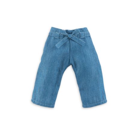 La taille haute réhaussée d'un joli nœud et la coupe di jean et ceinture pour poupée ma Corolle fait de ce pantalon un must-have de la saison !