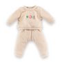 Pour une tenue décontractée, l'ensemble Jogging Beige (2 pièces) est idéal pour les petits poupons de 30 cm mon premier poupon Corolle.Cette tenue confortable est composée d'un sweat beige manches longues, ornée d'une jolie sérigraphie colorée Amour et d'un pantalon jogging beige.Confectionné dans