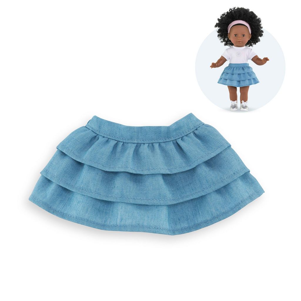 La jupe à volants pour poupée ma Corolle de 36 cm est un vêtement à la fois tendance et décontracté, à porter toute l'année. Confectionnée dans des matières douces et résistantes, elle est facile à enfiler. Cette jolie jupe en denim bleu est composée de plusieurs volants.Poupée ma Corolle de 36 cm v