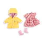 Coffret Vive la Pluie, une tenue complète avec accessoires pour habiller sa poupée ma Corolle de 36 cm et affronter avec élégance les intempéries ! Contient 4 accessoires : 1 Ciré jaune, 1 Robe à carreaux vichy rouge et blanc pour un look très vintage, 1 paire de lunettes de soleil rétro rose et 1 p