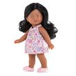 Elle a un corps tout en vinyle doux au toucher et à la délicate senteur de vanille. Cette Mini Corolline a la peau noire et ses yeux marron sont peints sur son visage. Elle a des cheveux longs noirs, bouclés et soyeux pour faciliter le coiffage.