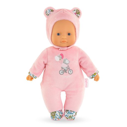 Le Pti'Coeur Ours Rose possède bien sûr tous les attributs d'un poupon Corolle : sa tête et ses mains sont en vinyle doux au toucher, et possèdent une délicate senteur de vanille, réconfortante pour les tout-petits.