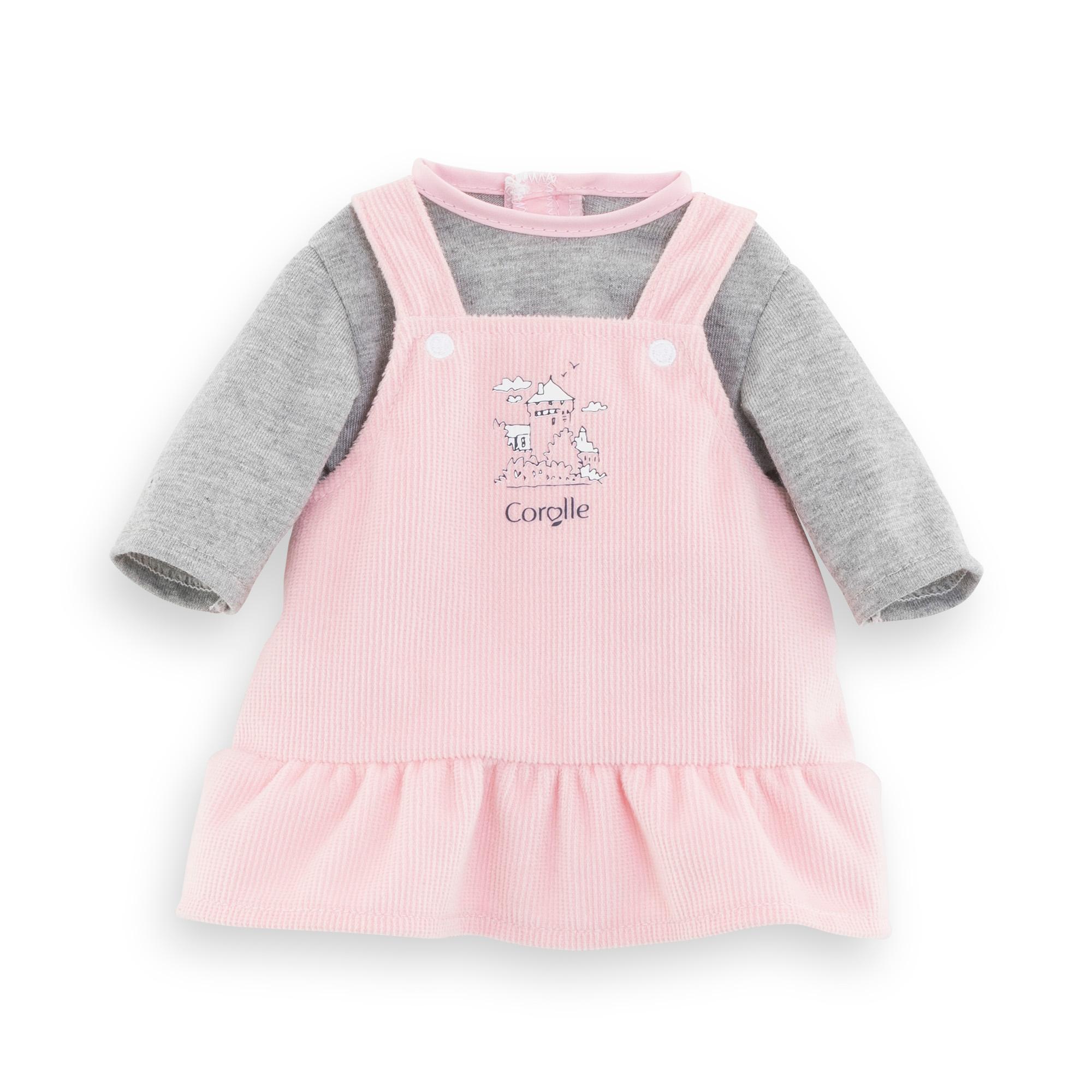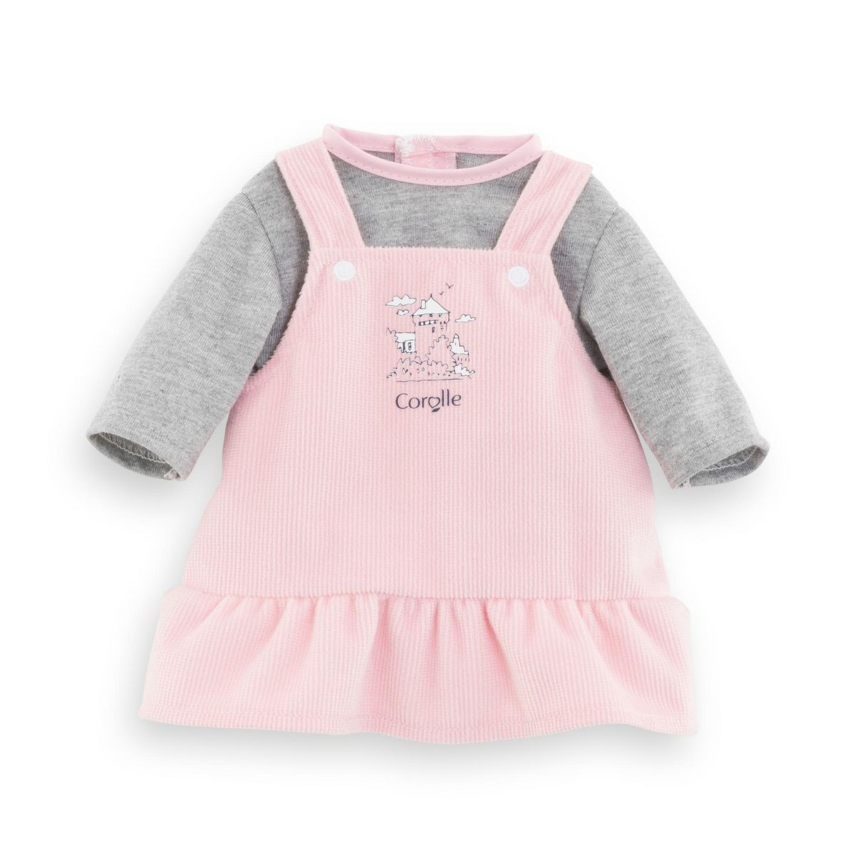 Intemporelle, la Robe Bords de Loire de couleur grise et rose ira à ravir aux grands poupons de 36cm mon grand poupon Corolle. Cette tenue 2-en-1, avec une robe à bretelles en velours rose et un tee-shirt gris, aux manches longues et cousu à la robe, est confectionnée dans des matières douces et r