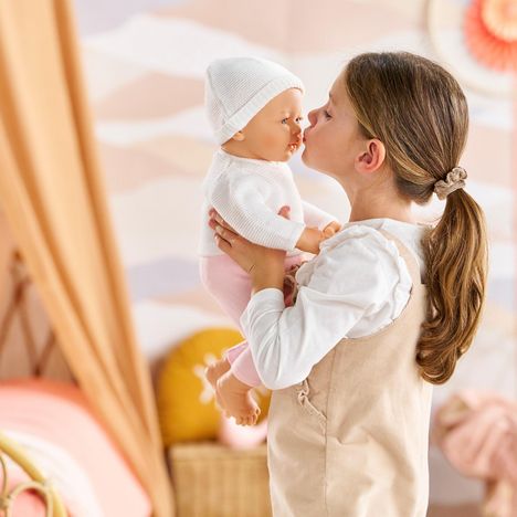La famille Corolle s'agrandit avec le poupon Rose, une grande nouveauté dans l'univers des poupées. Ce poupon réaliste est conçu pour permettre aux enfants, qu'il s'agisse d'une fille ou d'un garçon, de s'initier aux gestes tendres du quotidien. Avec ses 42 cm et son corps lesté de 1,2 kg, Rose repr