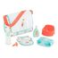 Le Sac à langer et Accessoires propose tous les éléments pour changer son grand poupon : un lait de toilette, une couche en tissu, un biberon, un bavoir, une tétine, un pot et un sac à langer 2-en-1 (tapis à langer et sac à langer). Le sac à langer pour poupon dispose d'une poche sur le côté et d'un