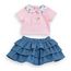 Pour une jolie tenue décontractée, l'ensemble T-Shirt et Jupe à volants Week-end à Paris est idéal pour les grands poupons de 36 cm mon grand poupon Corolle.