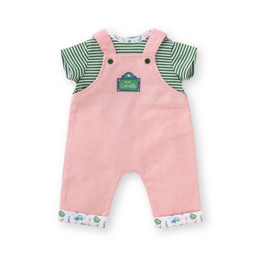 Pour une tenue décontractée, l'ensemble T-shirt et Salopette Week-end à Paris est le vêtement idéal pour les petits poupons de 30 cm mon premier poupon Corolle.
